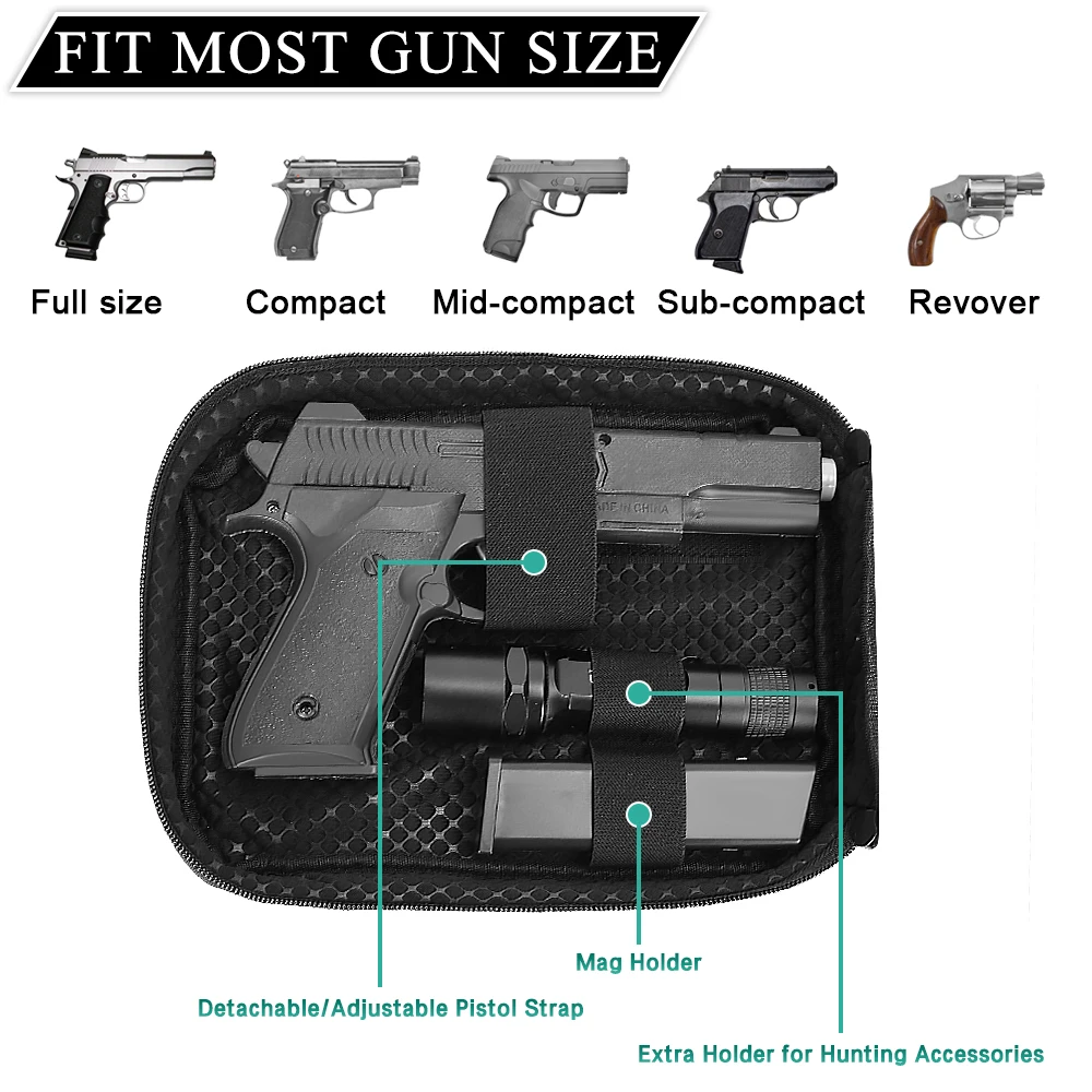 【COMPATIBILITY】Gun чехол Размеры: 9,4 "× 7" × 1,2 "; Практичный размер подходит для большинства типов машинок для пистолетов с а (макс.) общая длина 7 дюймов на рынке.