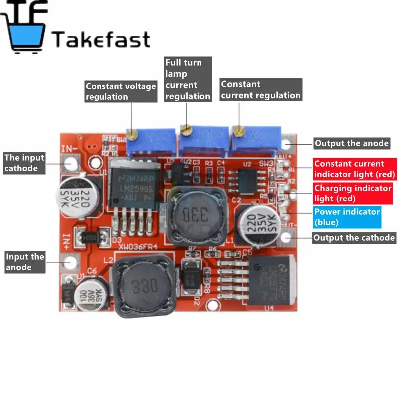 Свойства этого модуля: это неизолированный понижающий постоянный ток, модуль зарядки постоянного напряжения (CC CV)