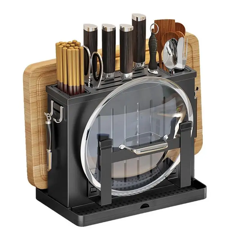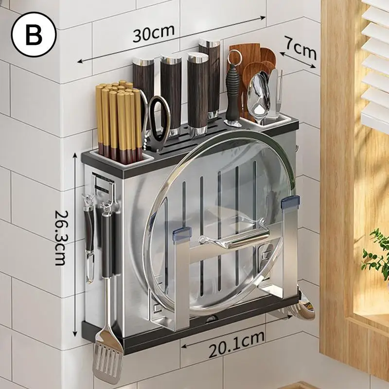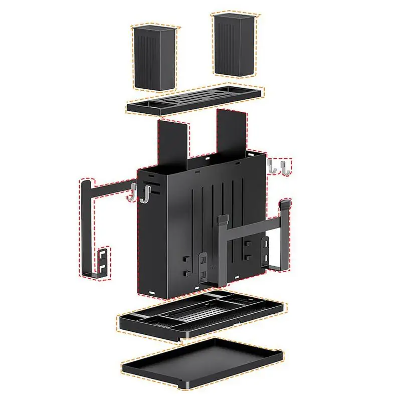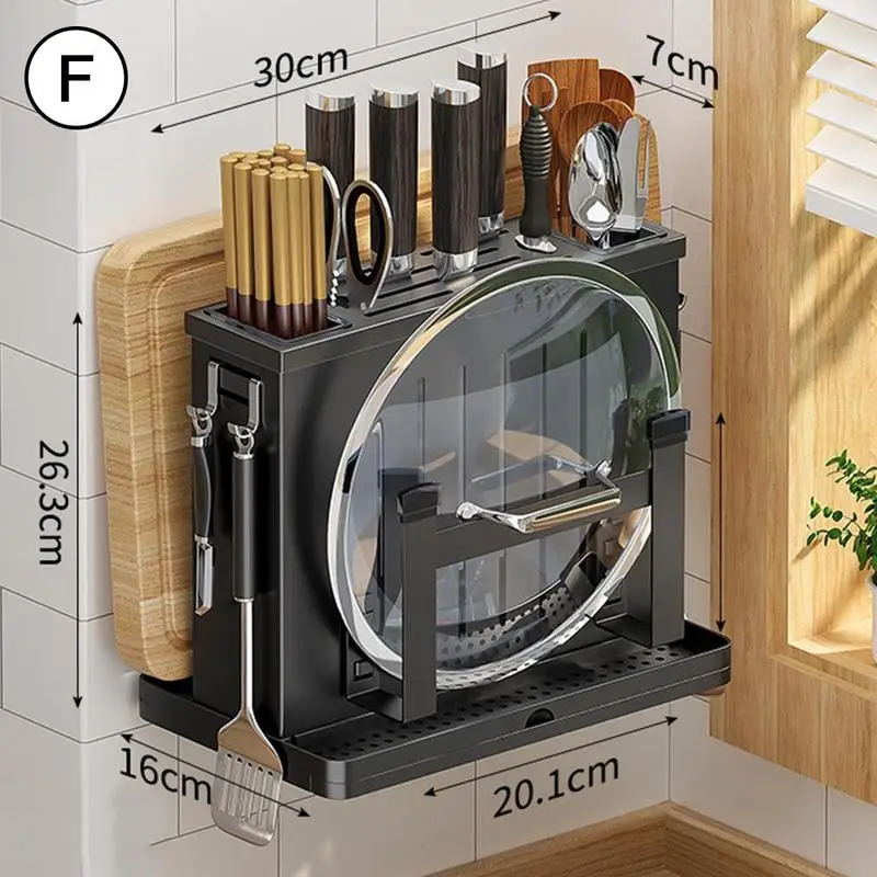 2. Этот продукт включает в себя различные функции хранения, кухонный нож, нож для фруктов, подставка для палочек, разделочную доску, зону покрытия кастрюль, подвижный крючок, чтобы кухня была безопасной и чистой.