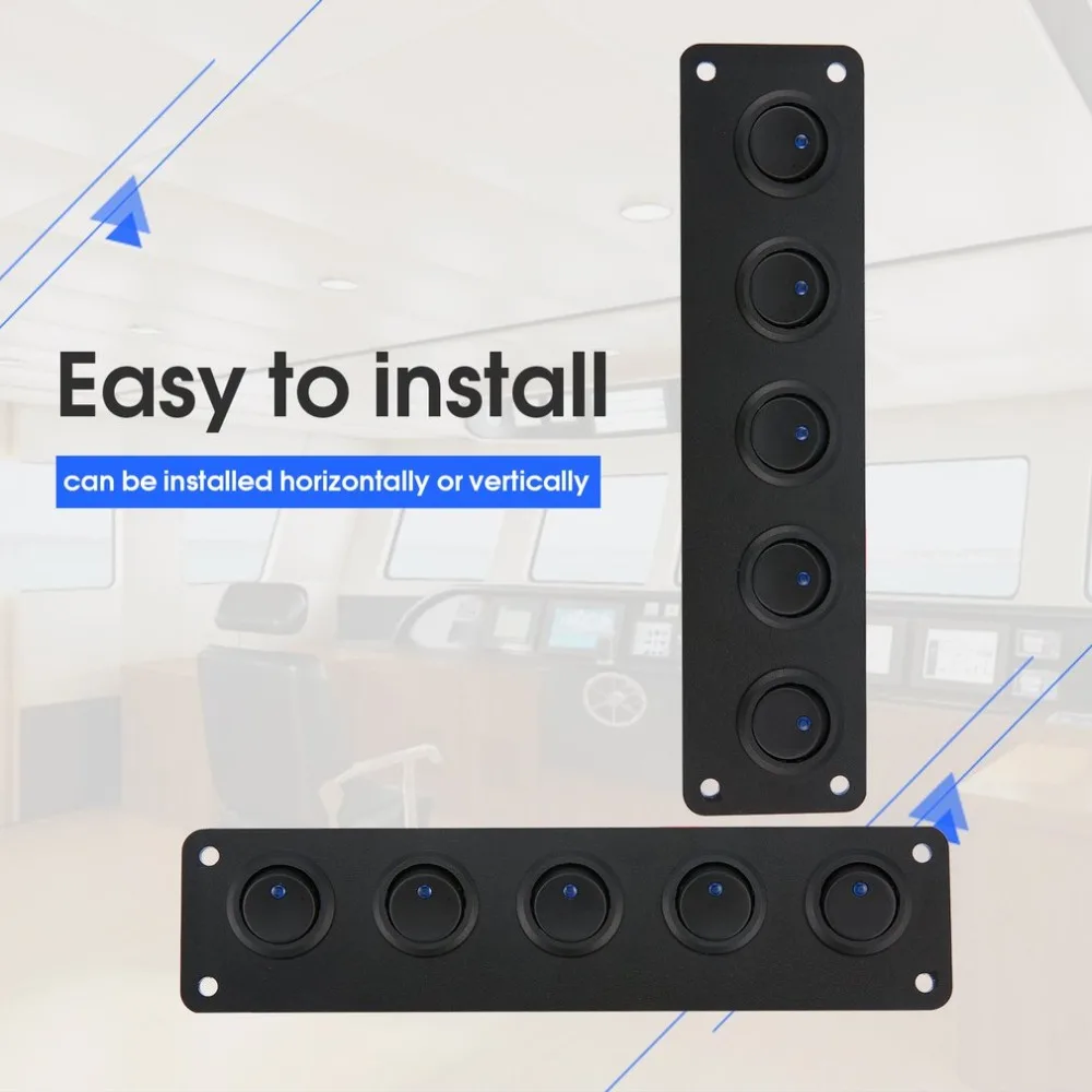 5 Blue LED Dot Light Toggle Switches. Easy to install, can be installed horizontally or vertically (Horizontally optional). Description: A Multi-Purpose --- Best match with wiring harness for controlling lighting of Led Light Bar, Led Work Lights, Fog Lamps, Headlights, Taillights and Auxiliary Lamps, etc. Specifications: Light Color: Blue Switches Available:5 Gang (LED LIGHT BAR, SPOT LIGHTS, SIDE LIGHTS, ROOF LIGHTS, ZOMBIE LIGHTS, DRIVING LIGHTS AND SO ON) Operating Temperature: -25 degree to 80 degree IP Rating:IP67 Package Included: 5 Gang Switch 1. Due to the difference between different monitors, the picture may not reflect the actual color of the item. We guarantee the style is the same as shown in the pictures. <span style="font-size:16px;font-family:" ;"="">