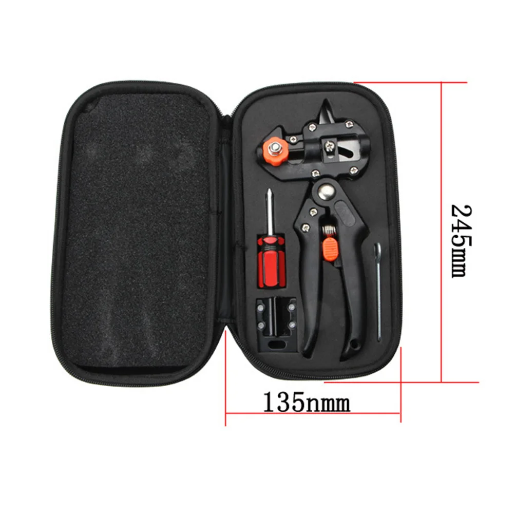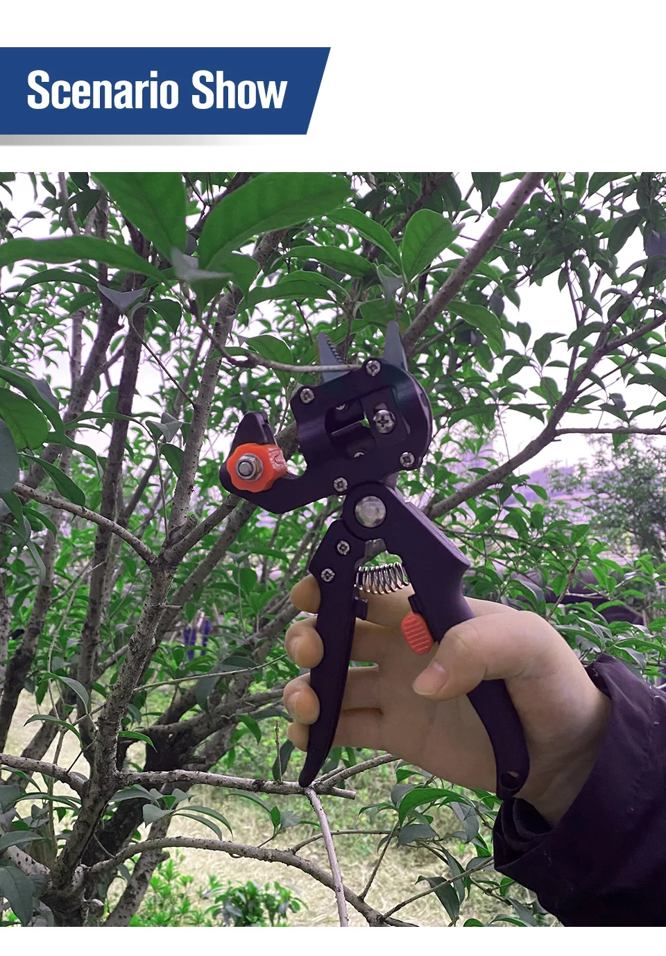 2 в 1 Набор инструментов-инструмент для прививки включает в себя секатор и гильотинное лезвие. Во-первых, это позволяет обрезать лишние листья и веточки и подготовить растения к прививке. Во-вторых, вы можете сделать точный разрез на складе с помощью специальной гильотины.
