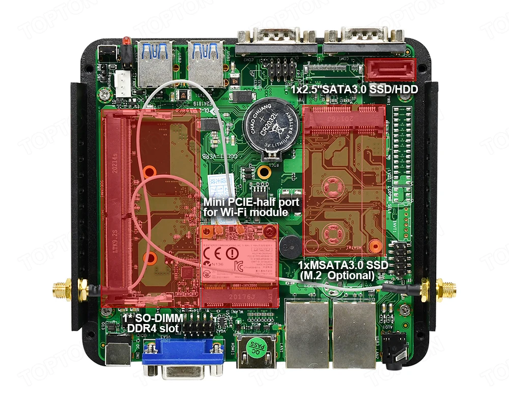 N2830: 1xmSATA SSD + 1x2.5''SATA HDD/SSD.