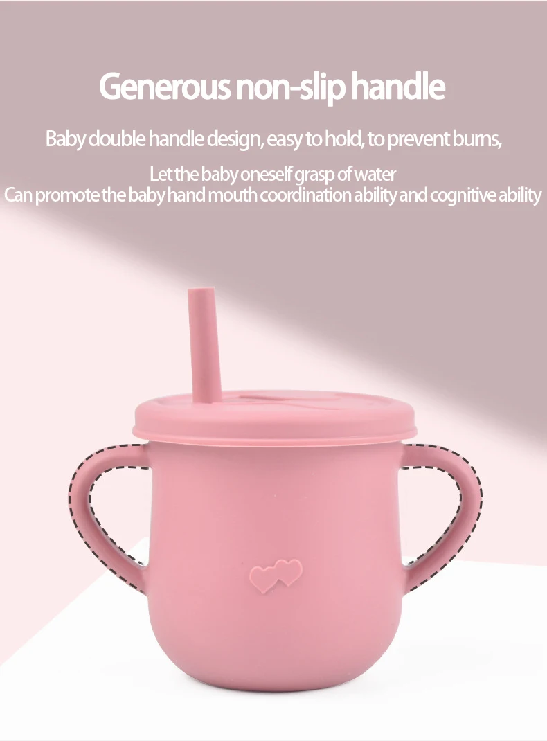 Детская обучающая чашка для кормления, Нескользящая силиконовая чашка BPA, портативный контейнер для хранения, герметичный, устойчивый к падению, с ручками
