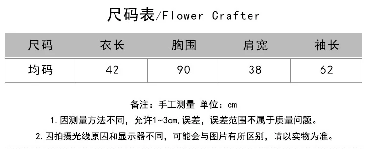 2. Пожалуйста, внимательно проверьте таблицу размеров перед заказом товара.