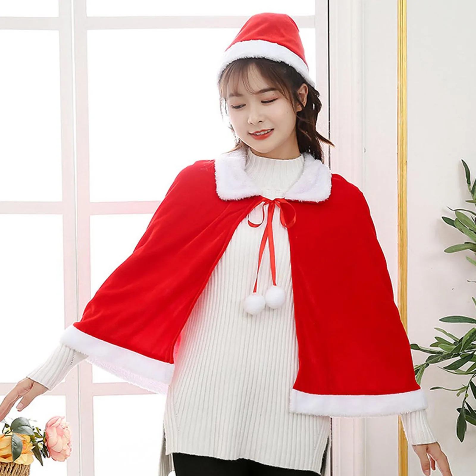★Милая накидка отлично подходит для рождественских ролевых игр в стиле миссис Санта-Клауса, оригинальное, уникальное и элегантное платье подходит для взрослых, подростков, женщин, дам. Семейный костюм для костюмированной вечеринки; Костюм с накидкой