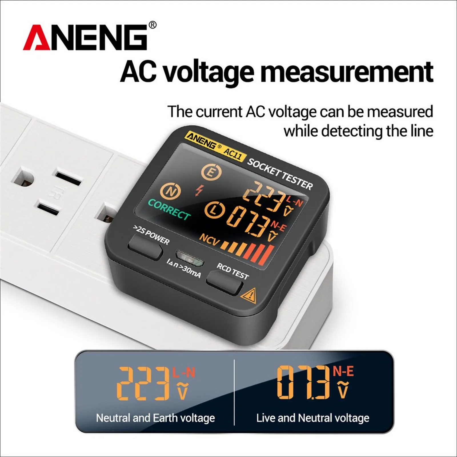-8 моделей дисплея: с 8 легко читаемыми индикаторами, чтобы указать состояние гнезда, легко определить: правильно проводка, отсутствует нейтральный провод, отсутствует заземляющий провод, заземляющий провод отсутствует, обратный заказ, обратный заказ, отсутствие живого провода, живой символ.