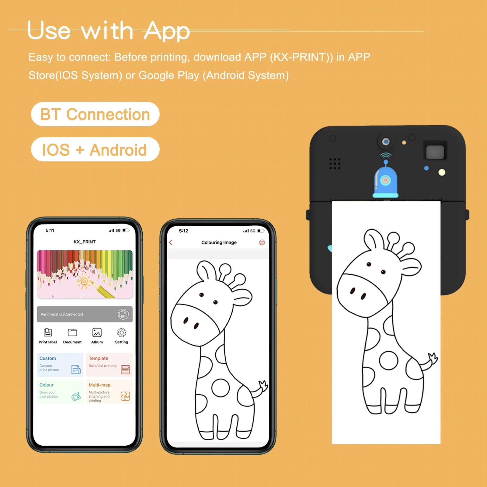 ✔Способ подключения: Поддержка беспроводного BT 4,0, подключенного к смартфону. Следуйте инструкциям пользователя, чтобы загрузить относительное приложение (KX-PRINT) через APP Store (IOS System) или Google Play (Android System). В комплекте 3 рулонная Тепловая бумага, 57 мм (ширина) x27мм (диаметр рулона), один рулон-это термоклеевая бумага, вы можете напечатать, как только получите посылка.