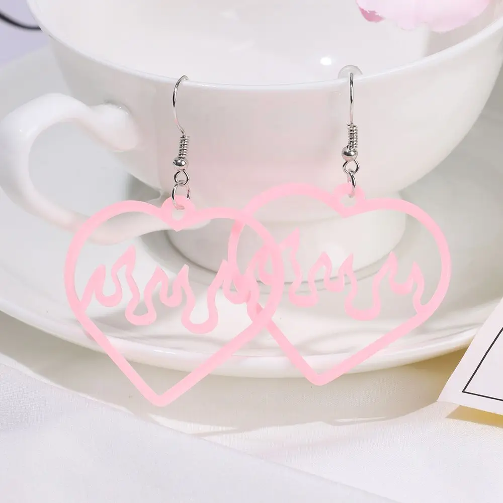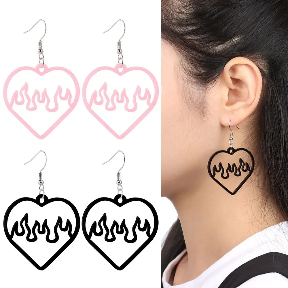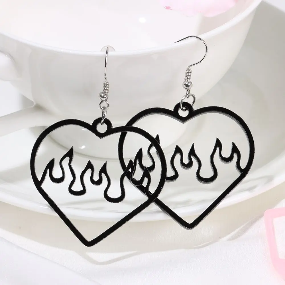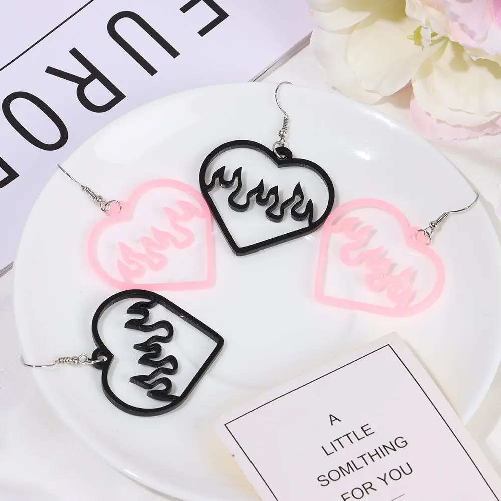 Акриловые полые серьги с сердцем и пламенем забавные геометрические свисающие серьги: спроектированы так, чтобы сочетать с другими ювелирными изделиями и одеждой для образа, который делает современное, Но вечное утверждение.