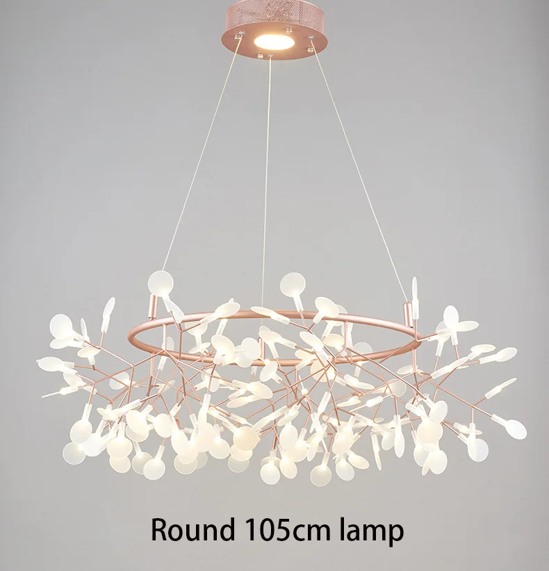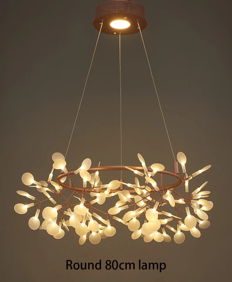 Kobuc Romantic Firefly LED Chandelier Light Stylish Tree Branch/Round Metal Dining room Restaurant Ceiling Spotlight Chandelier