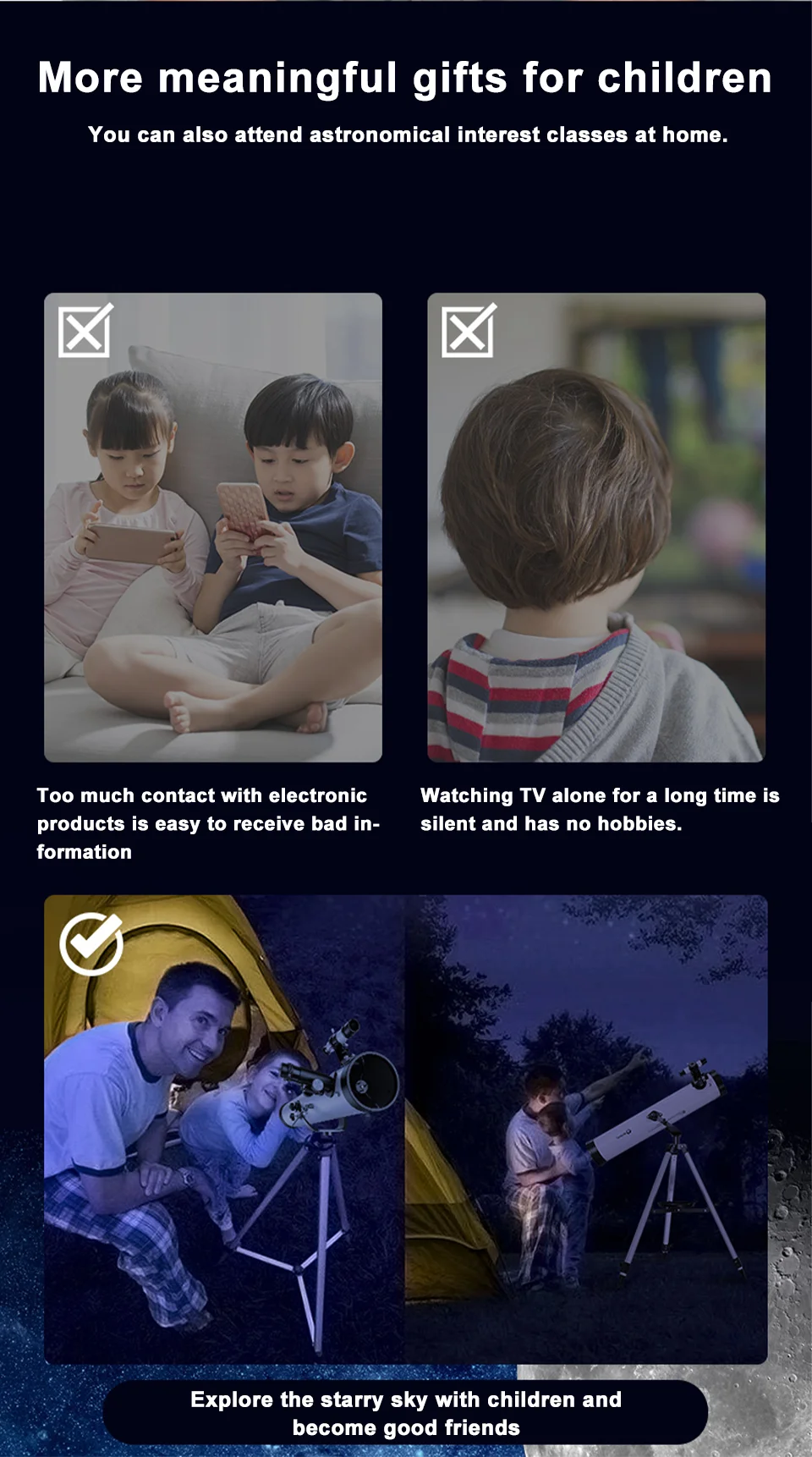 1,875 раз HD, легко увидеть Луна кратеры, кратеры, Овраги на Луне 2. Когда погода чистая, вы можете увидеть знаки колец сатурна и полос Юпитера (самая большая темная линия), Юпитер, Венера, туманность, созвездия, метеоритный дождь и т. Д. 3. Вы можете наблюдать за пейзажами, птицами и зданиями на земле в течение дня.