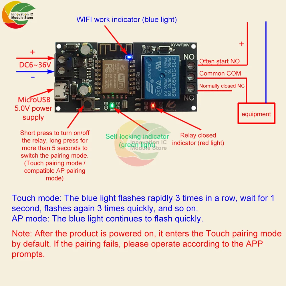 WF36V WIFI мобильный телефон пульт дистанционного управления релейный модуль 6-36 в