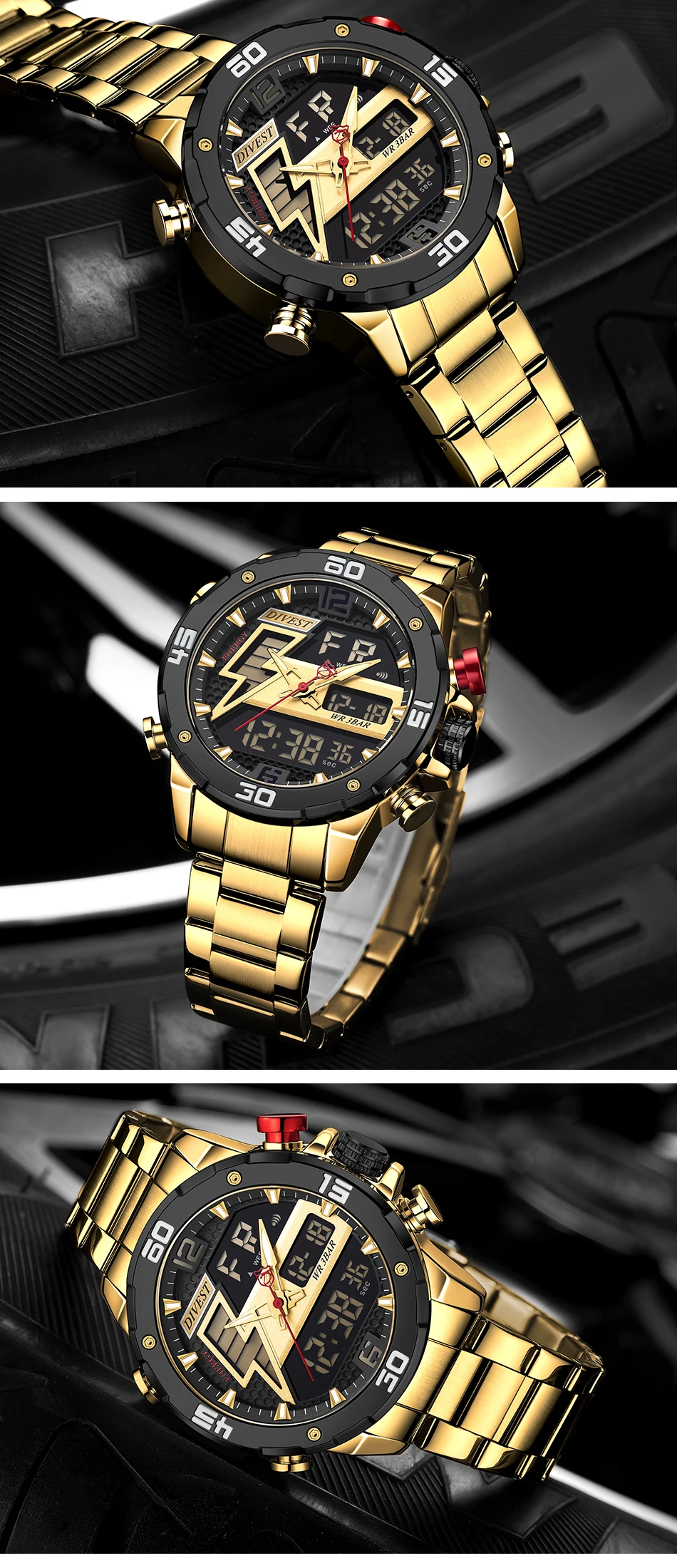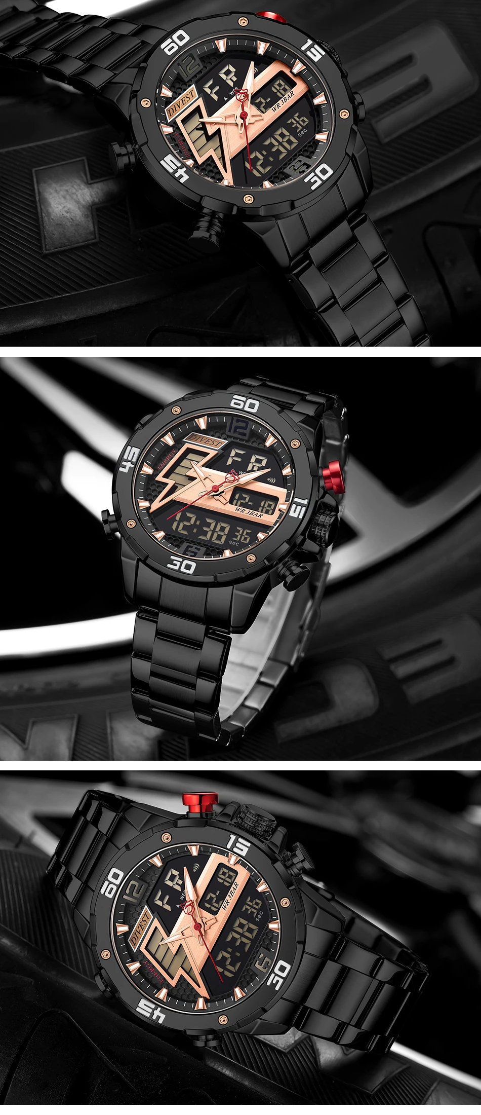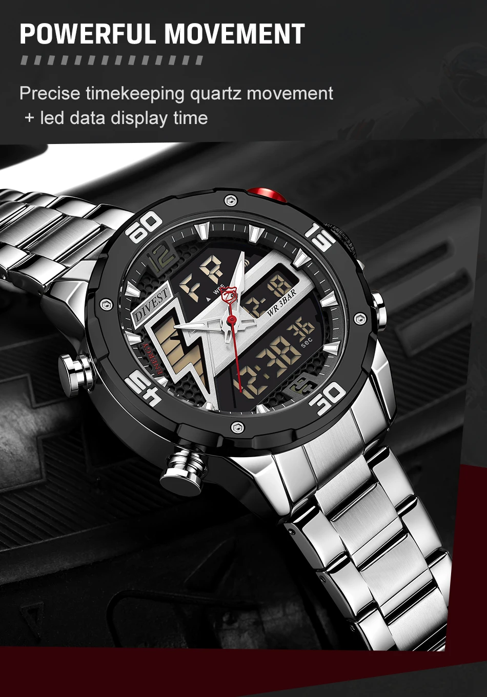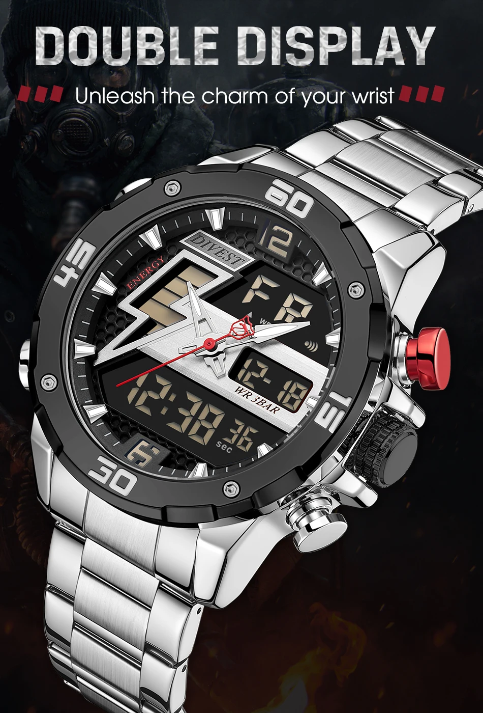 1 x аналоговый и цифровой дисплей с будильником и EL Blue Function Watch