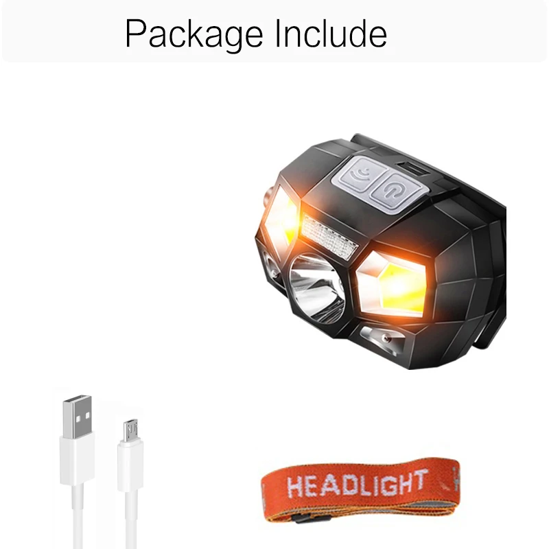 Светодиодный налобный фонарь 8000 Люмен, супер яркий датчик движения, мощный головной светильник, перезаряжаемый через USB, водонепроницаемый светильник