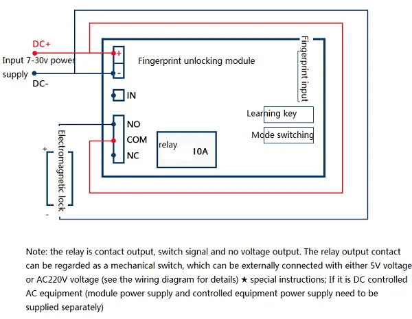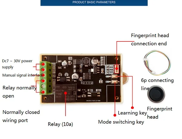 Этот продукт подходит для: модификации пользователя, используется для контроля доступа, управления автомобилем, электрического контроля, промышленного контроля и других случаев. 10 отпечатков пальцев и 90 отпечатков пальцев обычного пользователя могут быть включены, и релейный выходной режим (инчинг/самоблокировка, задержка) может быть свободно выбран. Вы можете удалить все отпечатки пальцев, все обычные отпечатки пальцев пользователя или отпечатки пальцев отдельных обычных пользователей. Вы также можете восстановить заводские настройки отпечатков пальцев одним нажатием кнопки. [заводским по умолчанию является режим вывода пробежек]