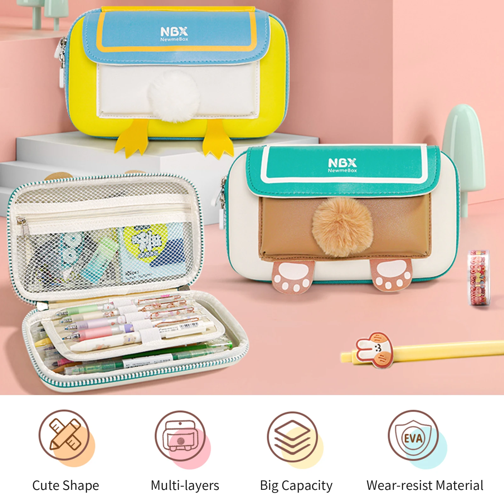 Большой объем, 3 слоя внутри чехол, он может легко хранить детские повседневные канцелярские принадлежности, такие как ручка, линейка, ластик, ножницы, лента и так далее.