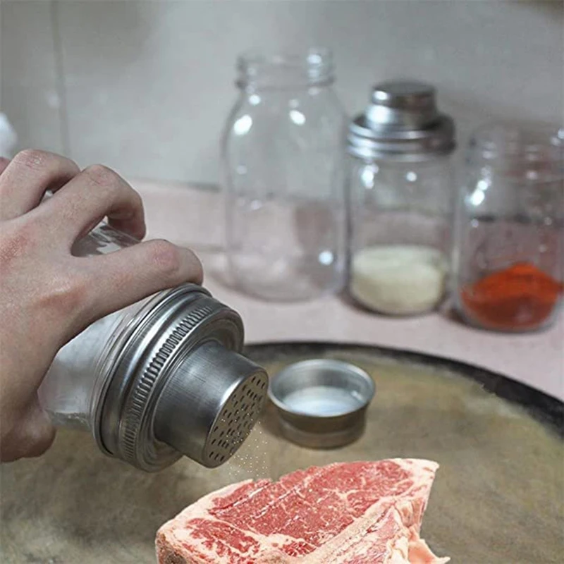 Универсальность: волшебная банка с шейкерными крышками идеально подходит для использования на кухне, предоставляя вам бесчисленные возможности. Шейкер для коктейлей, индивидуальная смесь банок для специй и тереть, шейкеры для соли и перца, дозатор корицы и сахара для тостов и сладкого картофеля, сито для муки, дозатор сыра пармезан, шейкер для соли для ванн и так далее.