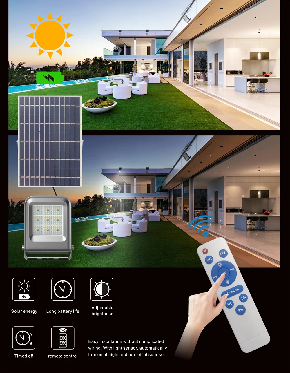 ·Интегрированные супер яркие защитные Солнечные прожекторы (3000lm) , радар-датчик