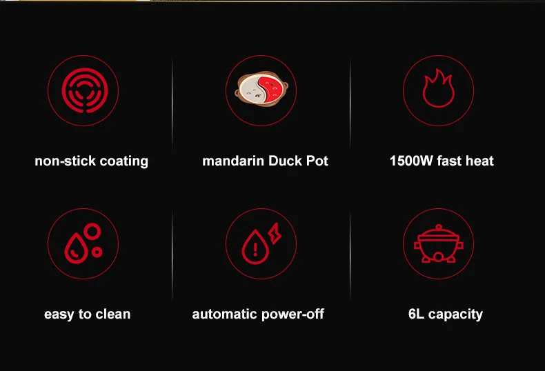 ● Высокая мощность 1500 Вт, u-образное двойное кольцо для сбора энергии, быстрое кипячение