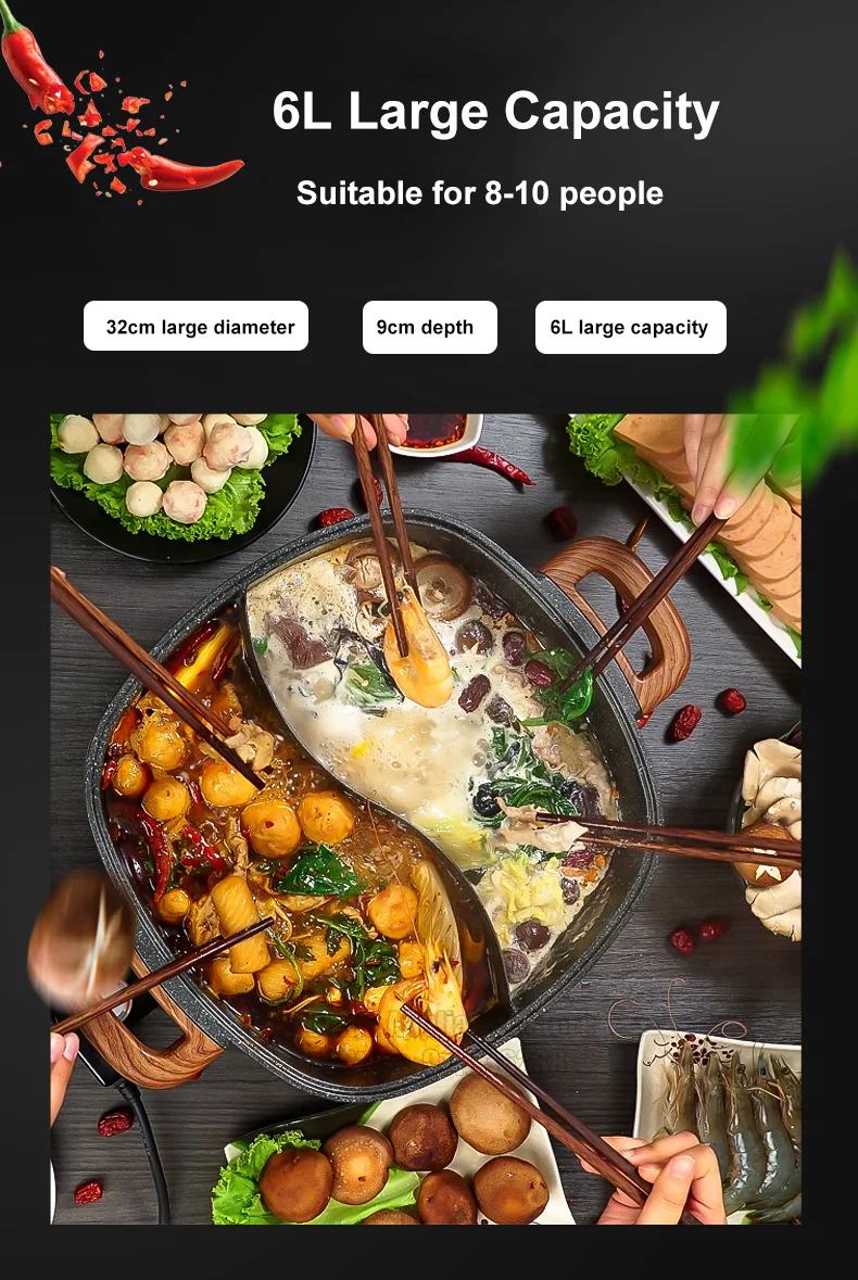 ● Большая емкость 6 л, подходит для людей 8-10, большой диаметр 32 см, глубина 9 см