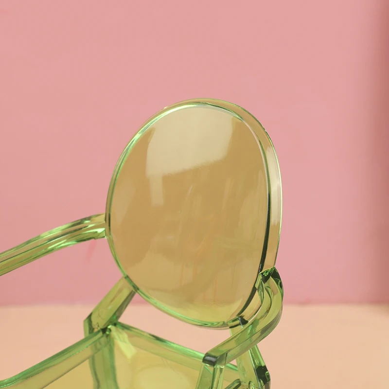 Изготовлено из пластика, миниатюрный стул кукольного домика имеет нежную поверхность, которая обеспечивает безопасное использование.