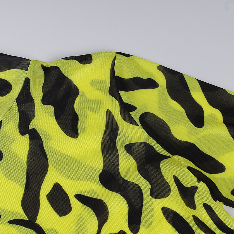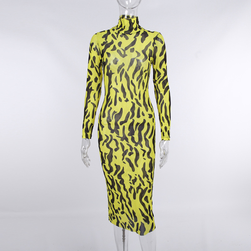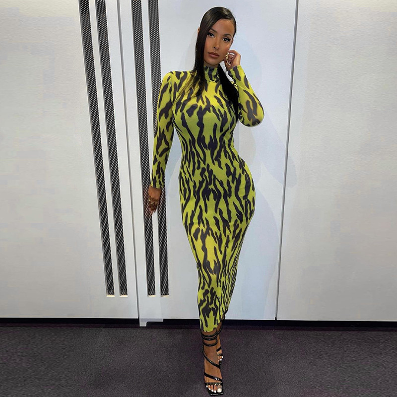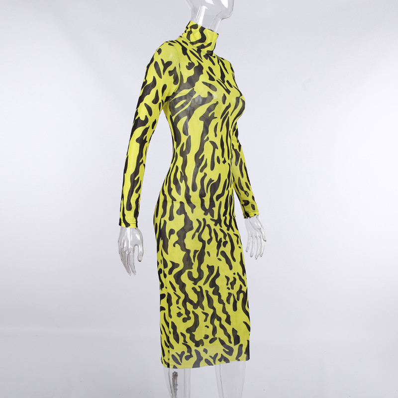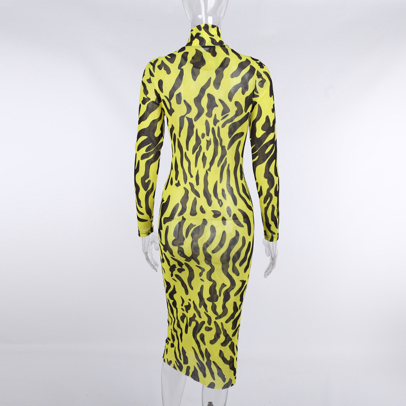 Сексуальное облегающее платье с принтом тигра, женское прозрачное Сетчатое платье миди с длинным рукавом, уличная одежда на осень и весну, Vestidos