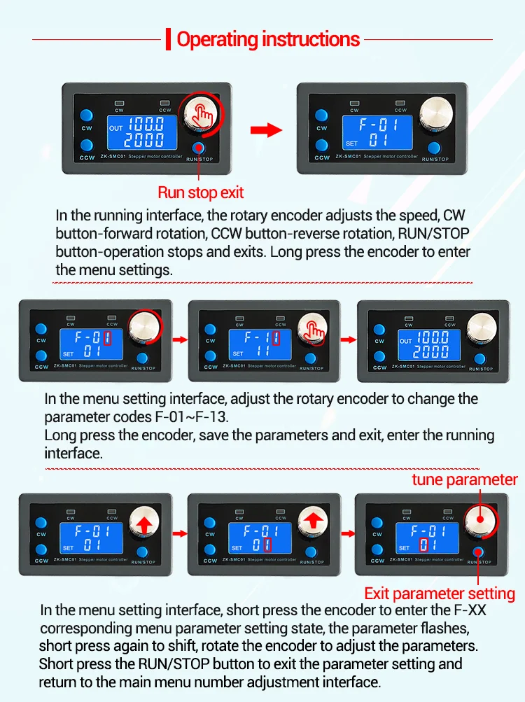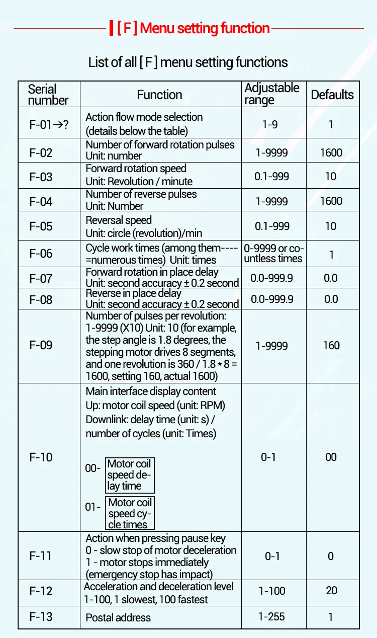 2. Модуль имеет множество встроенных режимов работы, и пользователь может быстро выбрать подходящий трек движения, может сохранить и установить расстояние/скорость/задержку/время цикла при отключении питания, может работать независимо как модуль или использоваться с другими системами
