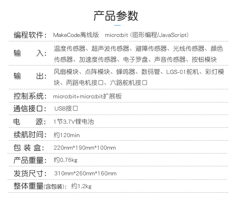 1.Contain microbit motherboard