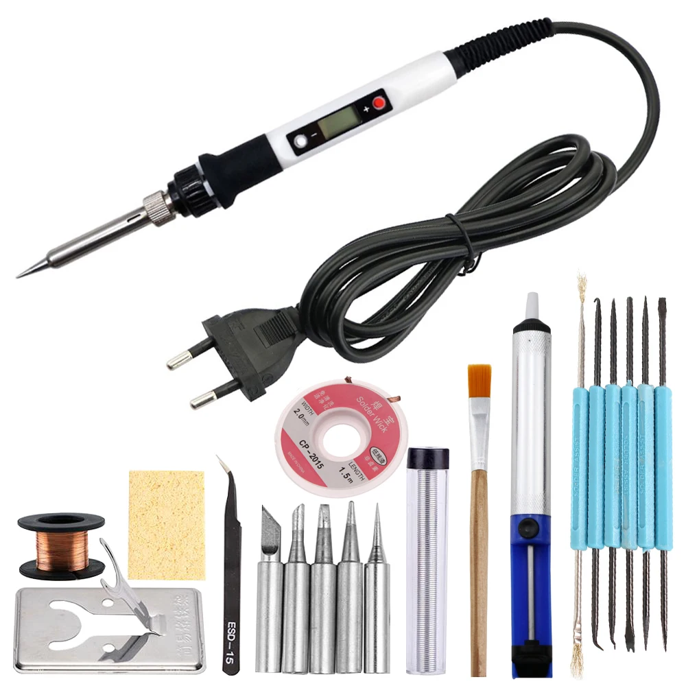 80 Вт Электрический паяльник с регулируемой температурой с железным наконечником, демонтажный насос, керамический тепловой ЖК-сварочный инструмент, аксессуары