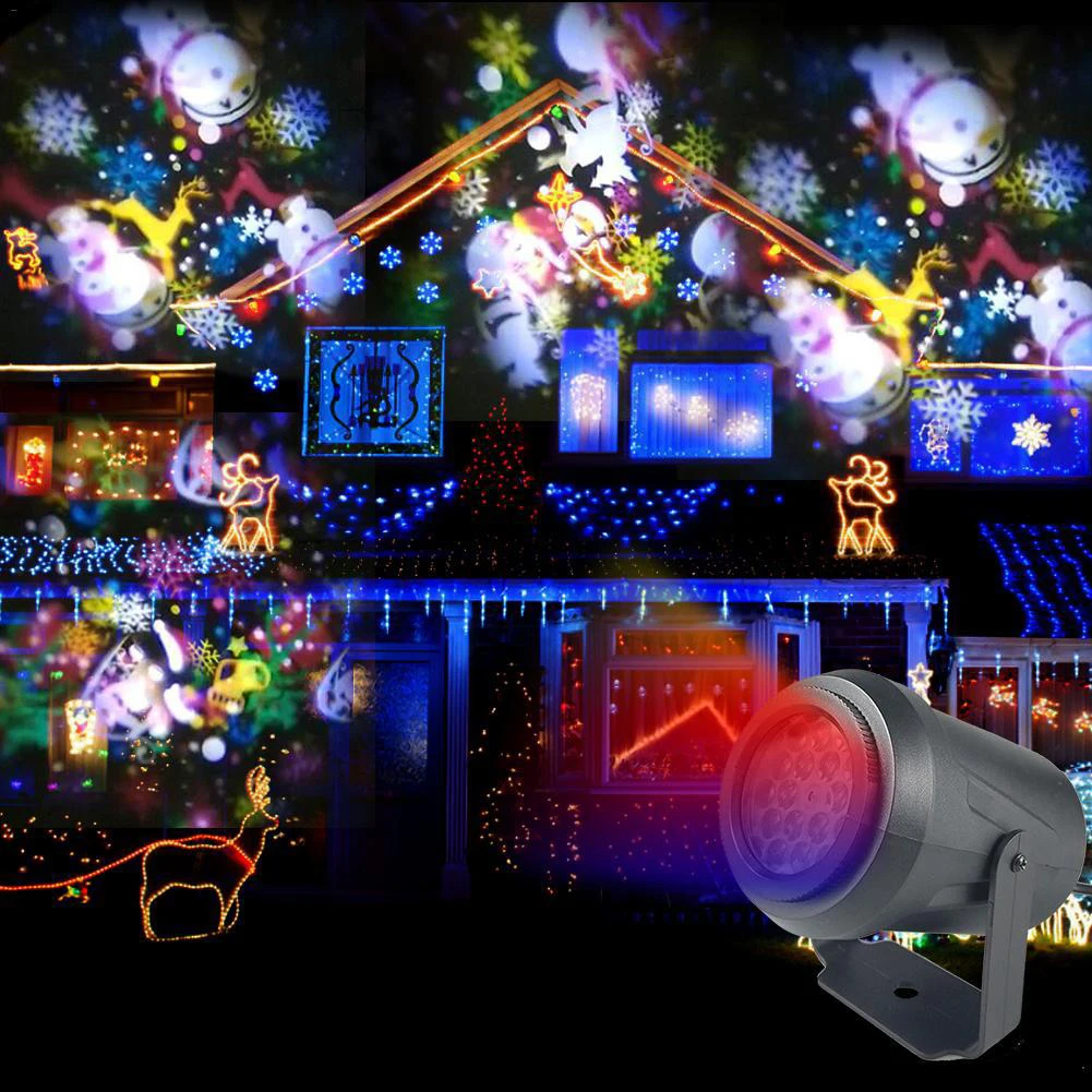 Светодиодная Снежинка с 16 рисунками, прожекторные огни, Рождественская проекция, водонепроницаемая уличная лампа, снежный прожектор для праздника, вечерние, для дома, сада, Нового года, сцены, ночного освещения