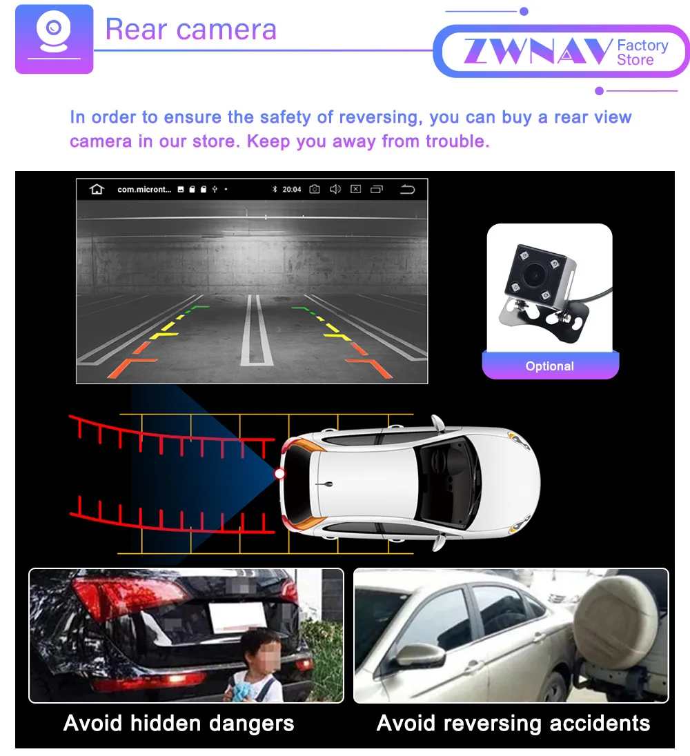 4. Поддерживает камеру заднего вида, когда вы поворачиваете заднюю часть автомобиля, она будет работать автоматически, она может отображать обратную дорожку.
