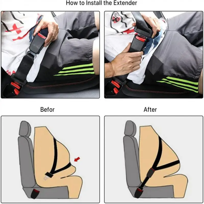 Функция: Расширьте ремень безопасности, чтобы сделать сидение в автомобиле более комфортным.