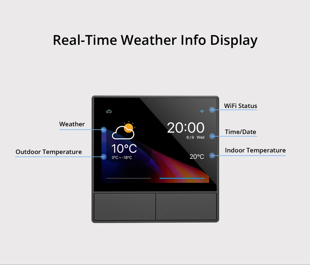 Настенный выключатель NSPanel Smart Scene оснащен встроенным мощным термостатом и экологическими датчиками.Вы можете устанавливать различные температуры в помещении в течение различных периодов времени, и NSPanel автоматически запускает нагревание или охлаждение оборудования в соответствии с вашими условиями настройки, чтобы сохранить комнату при удобной температуре. Более того,NSPanel имеет функцию управления на основе сценарияВы можете настроить различные режимы для пробуждения, работы, развлечений и сна, а также переключать режимы в любое время.