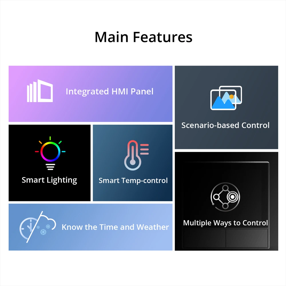 NS Panel использует дизайн панели HMI, которая в центре работает с различными бытовыми приборами, что позволяет управлять ими очень удобным способом! С NS панелью ваши предпочтения для освещения все по вашему желанию на этой панели HMI, будь то яркость, диммер, RGB или цветовая температура.