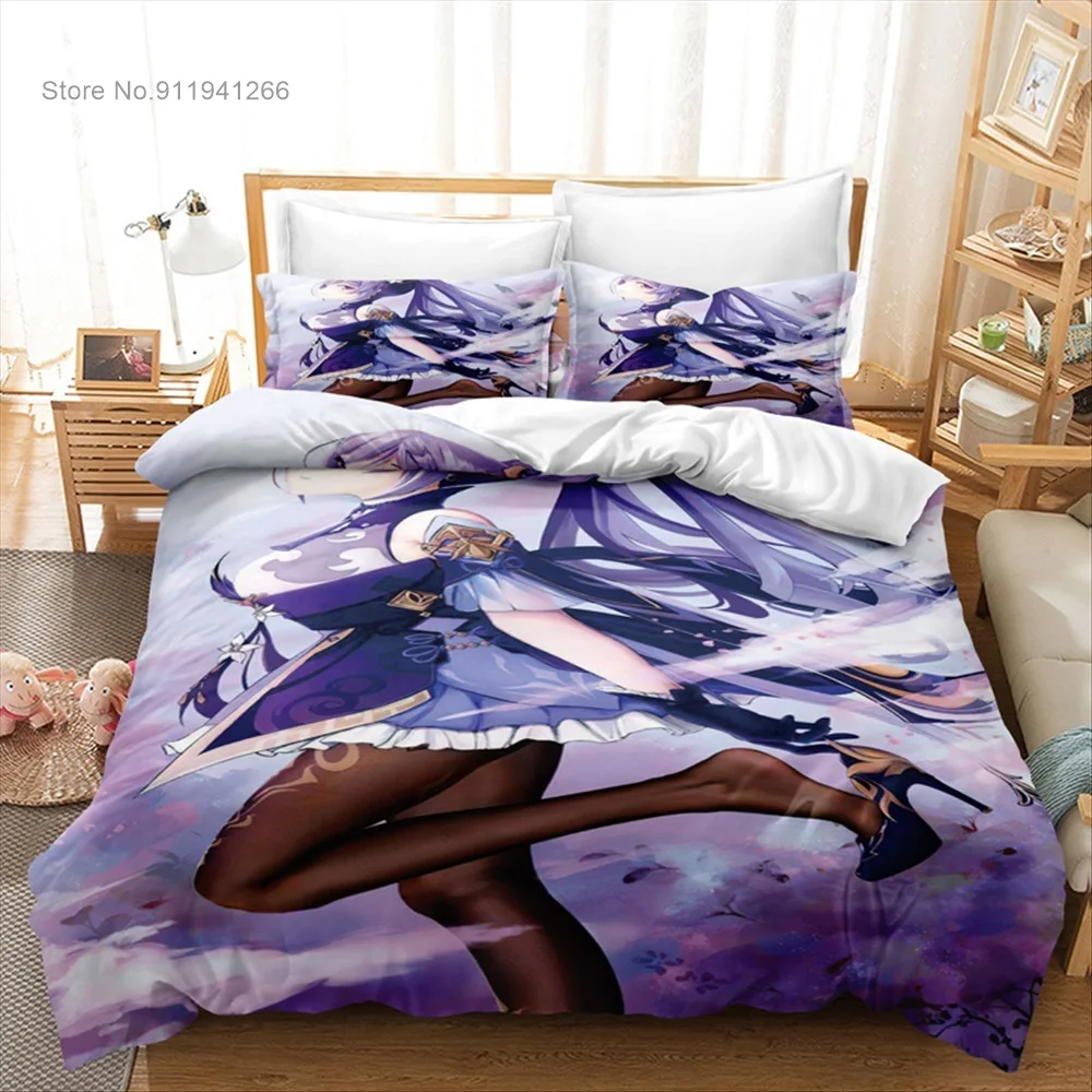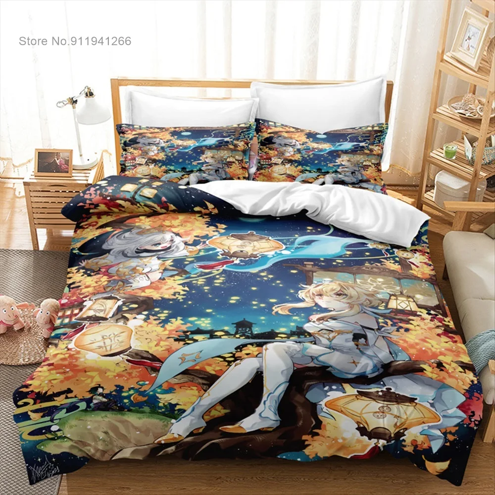 Комплект постельного белья с объемным рисунком из мультфильма «Игра генсин», набор пододеяльников, одеяло, постельное белье, односпальная королева, один размер, подарки для мальчиков и девочек