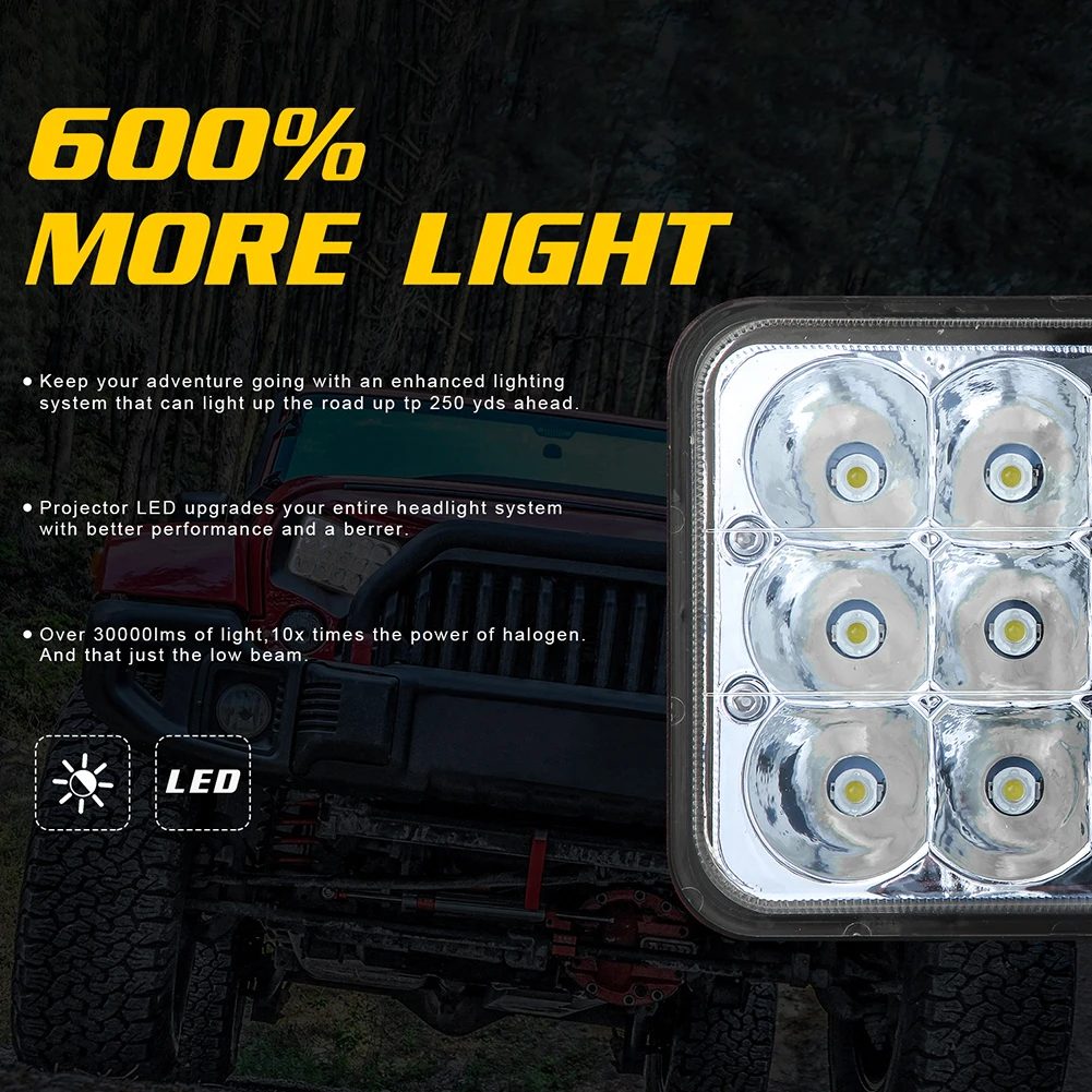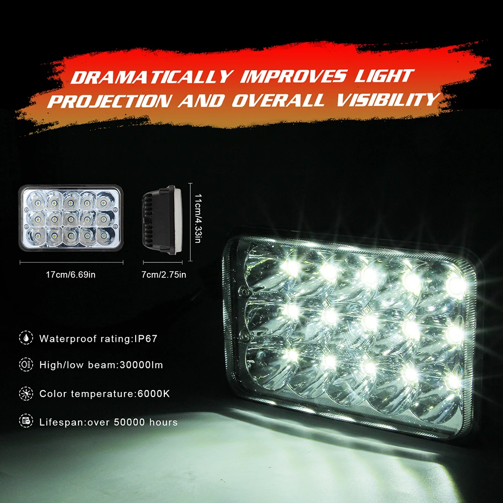 180 Вт 15LED Высокий люмен 6000 К белые фары дальнего света Hi/Lo луч Водонепроницаемый 4x6 дюймов фара для автомобиля квадрат для джипа Chevy пикап