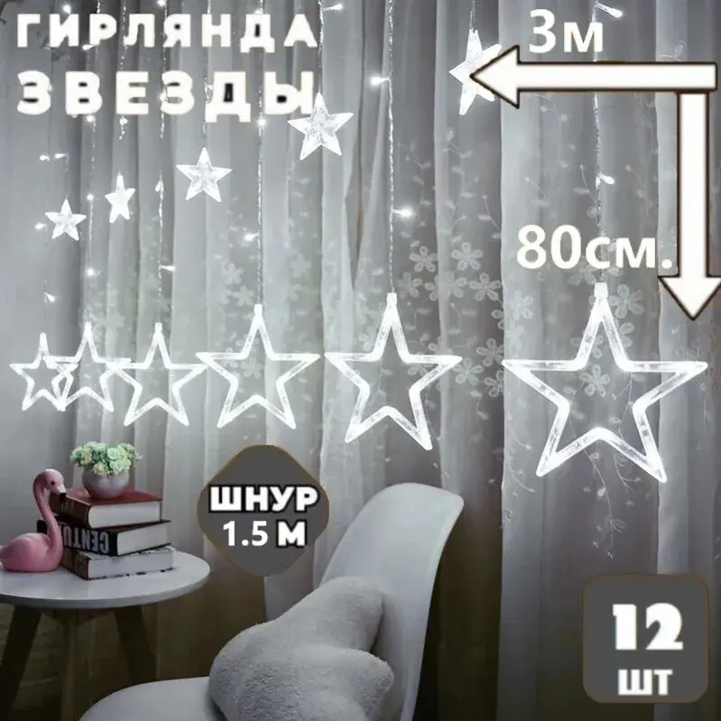 Номер модели 388422243 Название бренда EVIL LIVE Происхождение Китай Вид гирлянды Звёзды Высота 0,8 м Количество режимов 8 Цвет свечения холодный белый Длина шнура 1,5 мвнешний вид товара