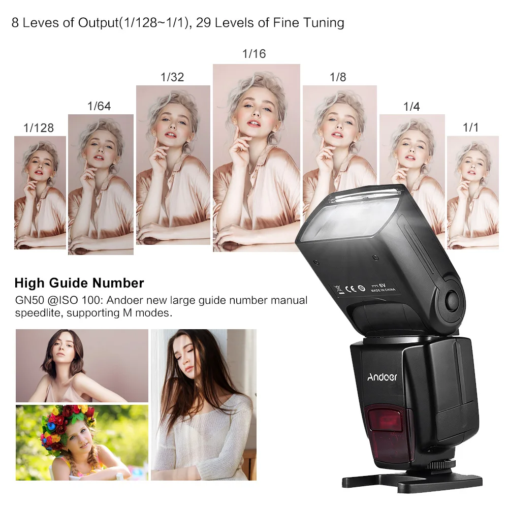 GN50 @ ISO 100: новый большой направляющий номер ручной speedlite, Поддержка режимов M. Автоматически сохраните настройки тока.