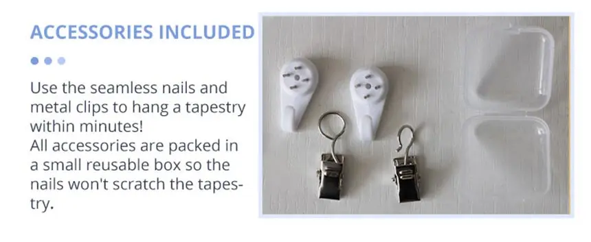 Посылка в комплекте: 1 гобелен + 2 гвозди + 2 крючка