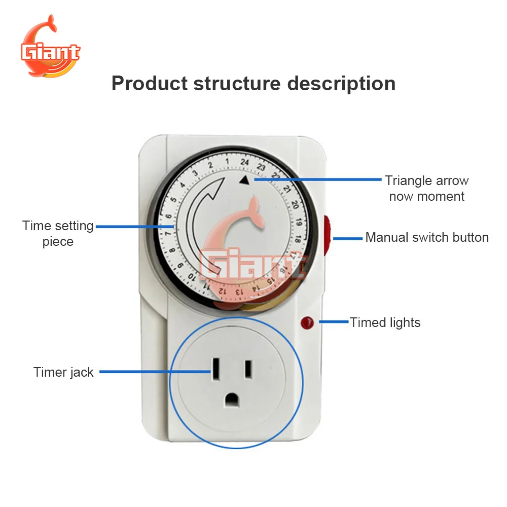 2. 24-часовой формат разъем питания таймер с Светодиодный индикатор и светильник.