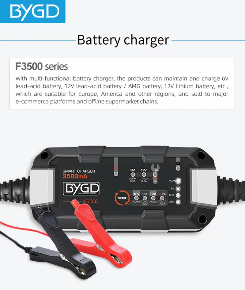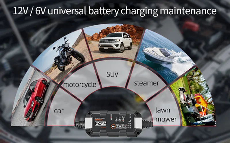 BYGD 3,5 Ампер полностью автоматическое зарядное устройство 6 в 12 В импульсный ремонт батарея ремонтник трикле зарядное устройство для автомобиля газонокосилка лодка
