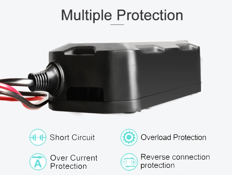 Функциональная защита:Защита от короткого замыкания на выходе, защита от перегрева, защита от перенапряжения, защита от обратного подключения, защита от низкого напряжения