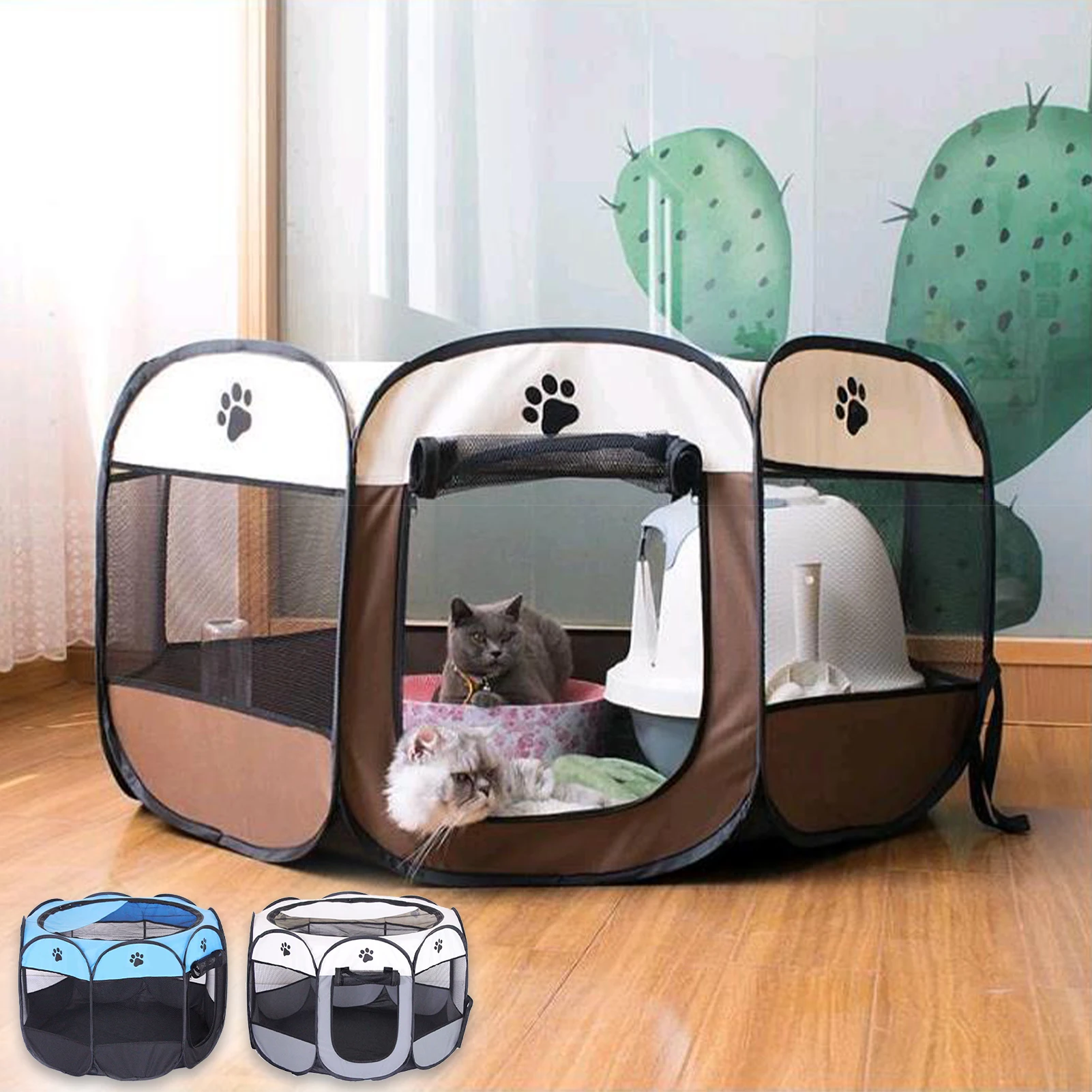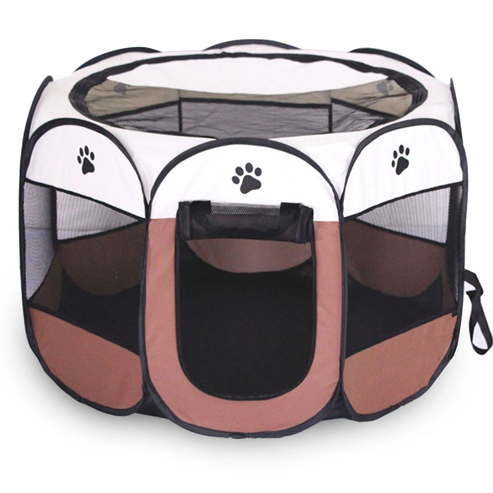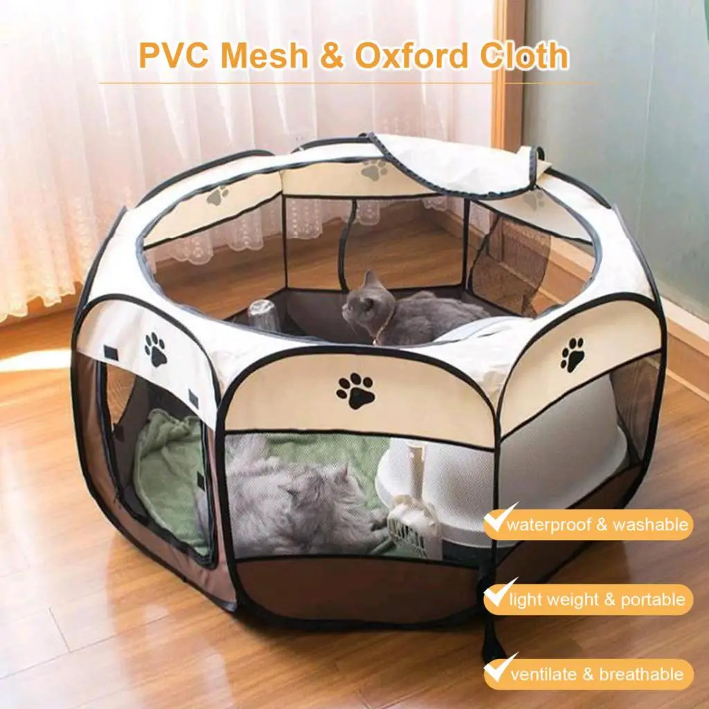 Дизайн для домашних животных:С 8 боковыми панелями, образующими круглую форму, манеж для домашних животных имеет 360 градусов вид на солнце, просторный интерьер, хорошо проветривается. Визуальное видение позволяет домашним животным видеть своих владельцев без беспокойства, и владельцы могут проверить своих собак и кошек в любое время.