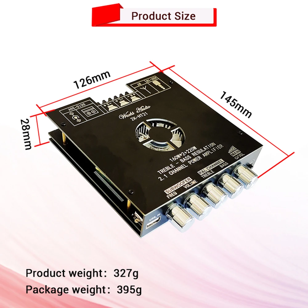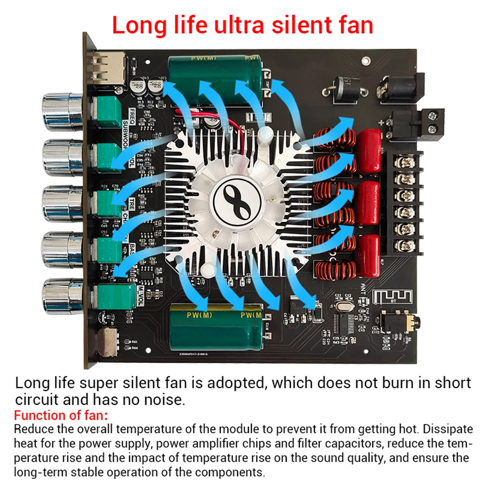TDA7498E встроенный вентилятор охлаждения ZK-HT21 AUX Bluetooth-Совместимость 5,0 USB стерео аудио усилитель мощности плата 2,1 канала