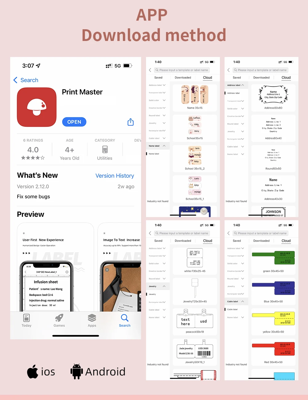 Изображение, штрих-код, QRcode, сканирование печати и другие функции могут быть реализованы в 【Print Master】APP.