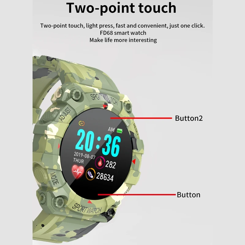 Двухточечное нажатие двухточечное нажатие, Легкое нажатие, быстрое и удобное, всего одно нажатие. Умные часы FD68 делают жизнь более интересной