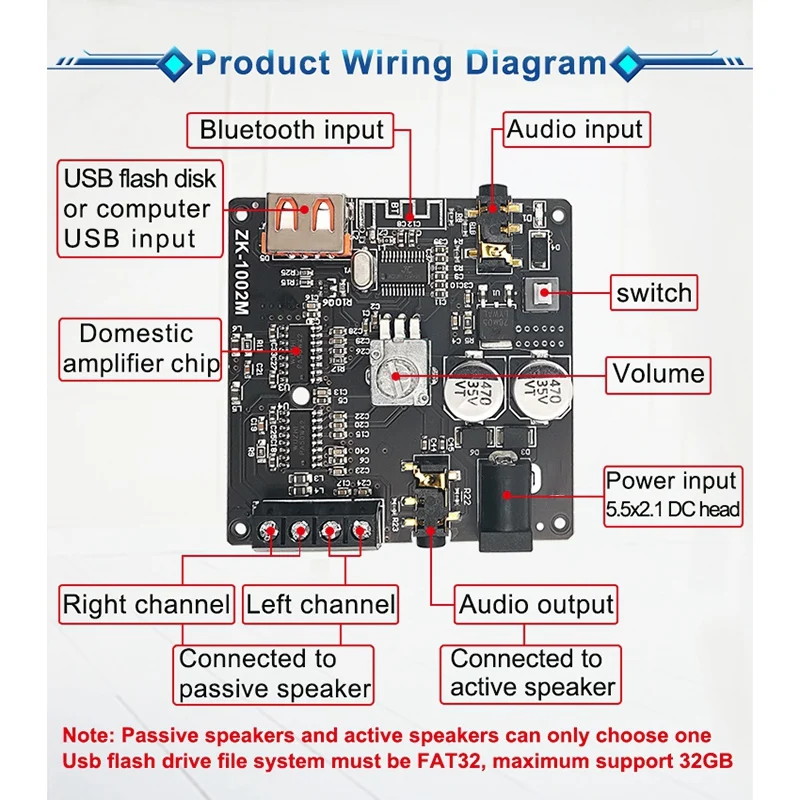 Аудио вход: Bluetooth + AUX + USB флэш-диск + компьютер USB(plug and play)