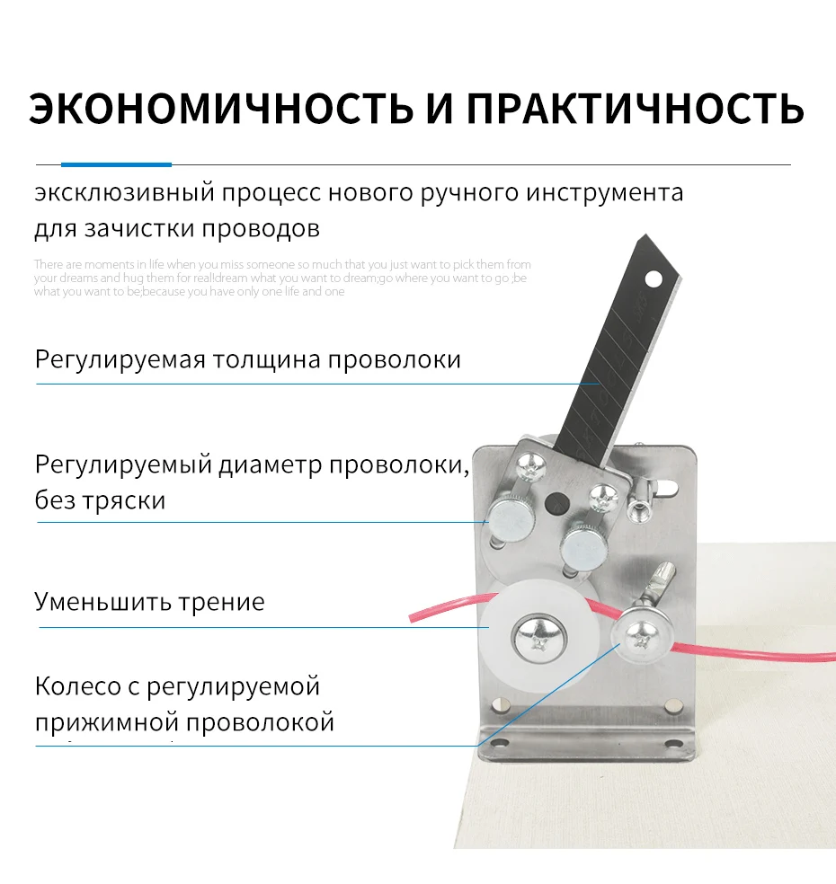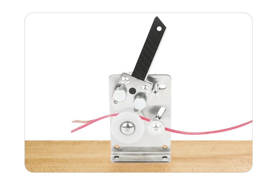 Ослабьте винт, отрегулируйте слайдер из нержавеющей стали, аккуратно нажмите провод и отрегулируйте длину лезвия в соответствии с толщиной проволочной кожи