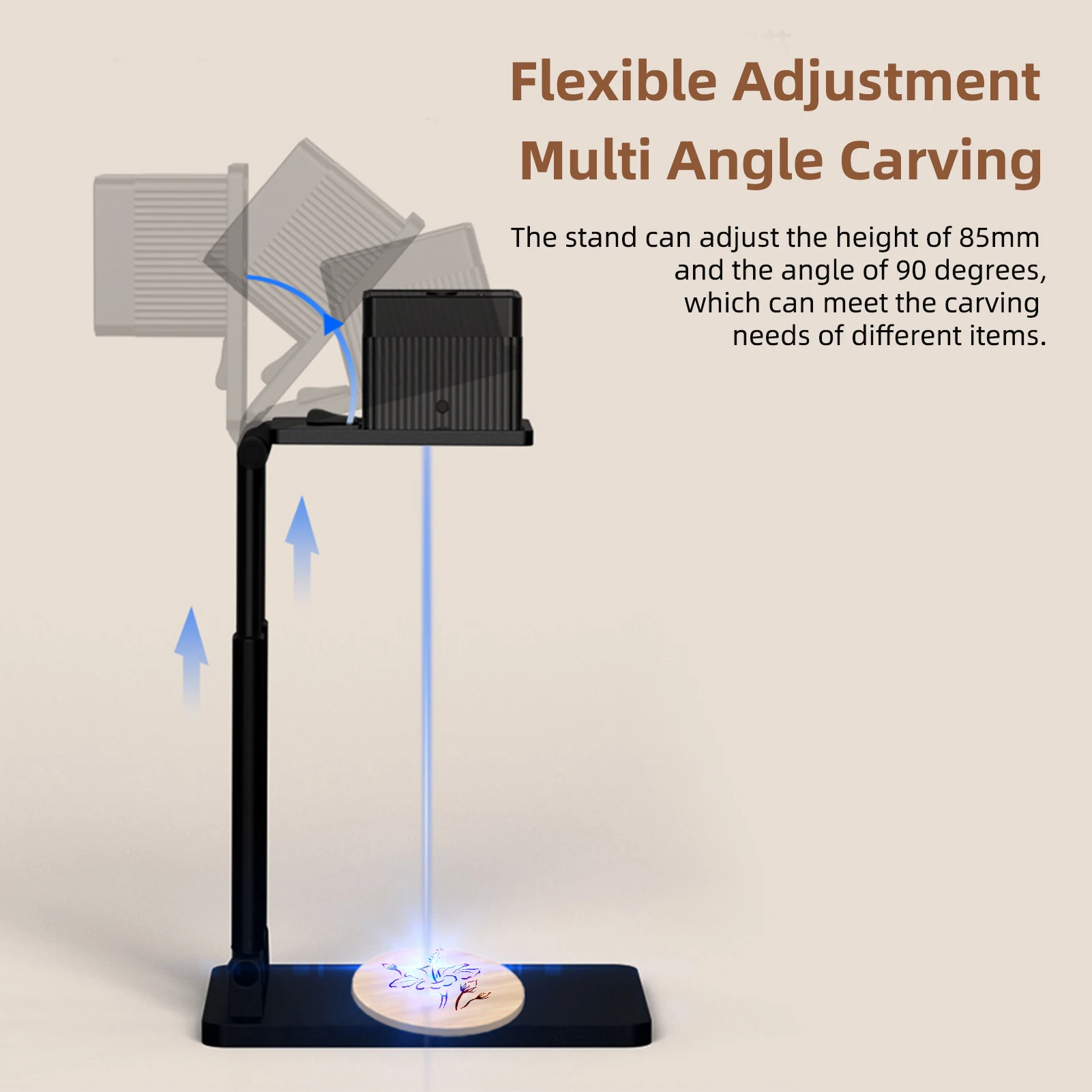 Adjustable Stand: It comes with a foldable stand, easy to store and carry. Flexible use, the stand can adjust the height of 85mm and the angle of 90 degrees, which can meet the carving needs of different items.