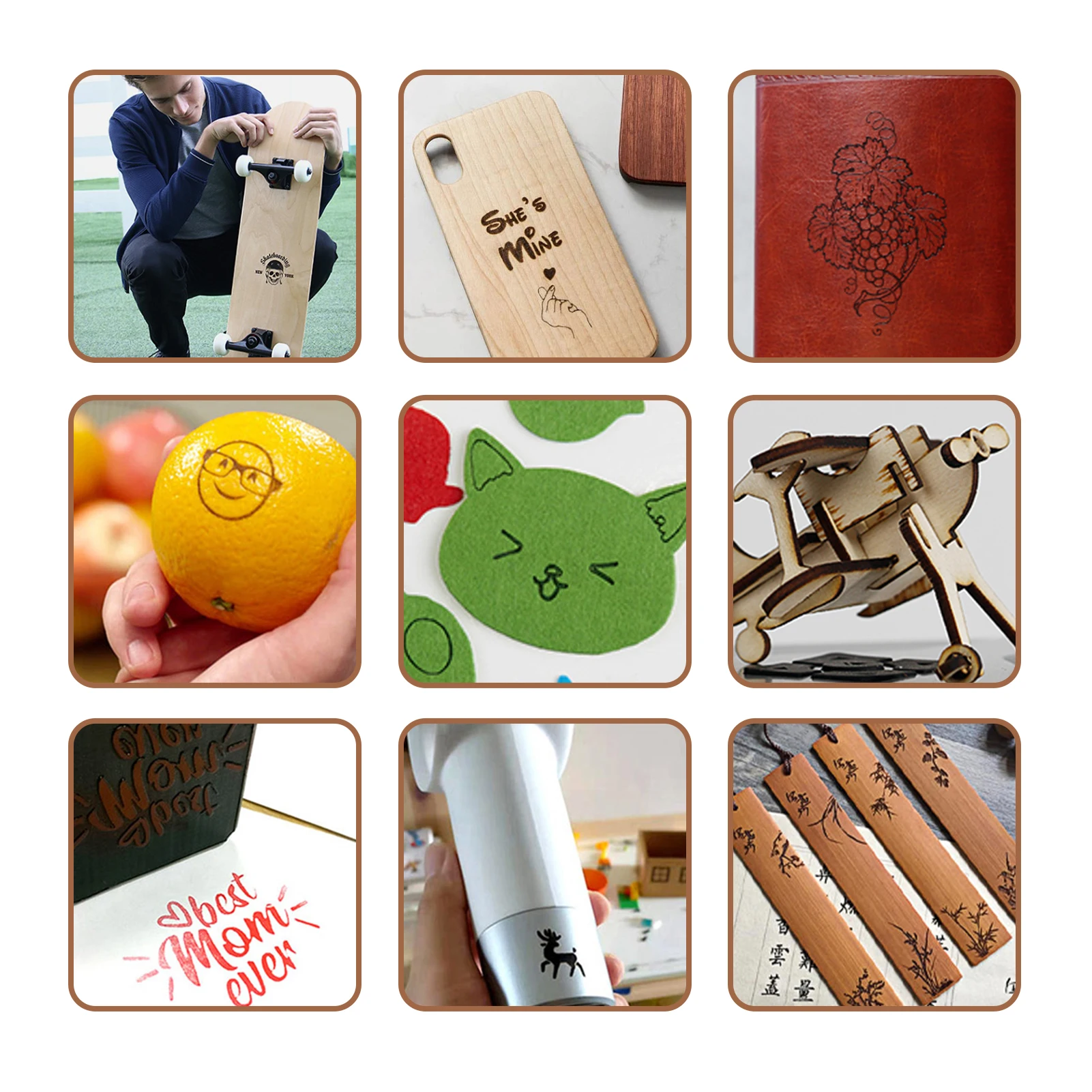 Wide Application: Mini portable laser engraver, widely used in various materials, such as leather, wood, bamboo, plastic, paper, ceramics, etc., support engraving, carving and cutting, support BMP, JPEG, PNG and other image formats.