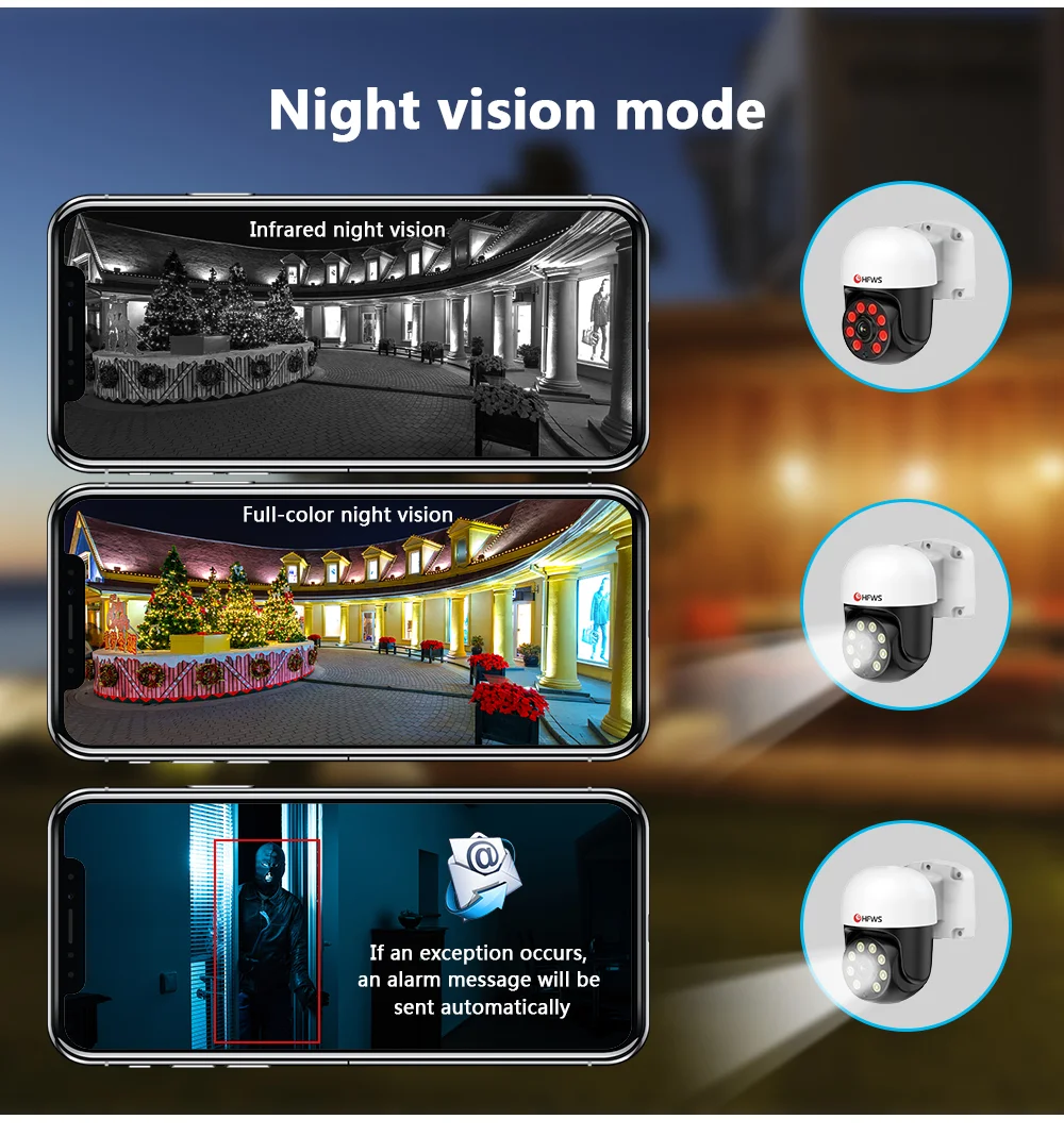 Обнаружение человеческого тела AI, ночная активация движения обнаружения цвета на ece; Когда кто-то ворвется в область съемки, камера сделает звуковой сигнал тревоги и сообщения тревоги будут погружены в приложение телефона.